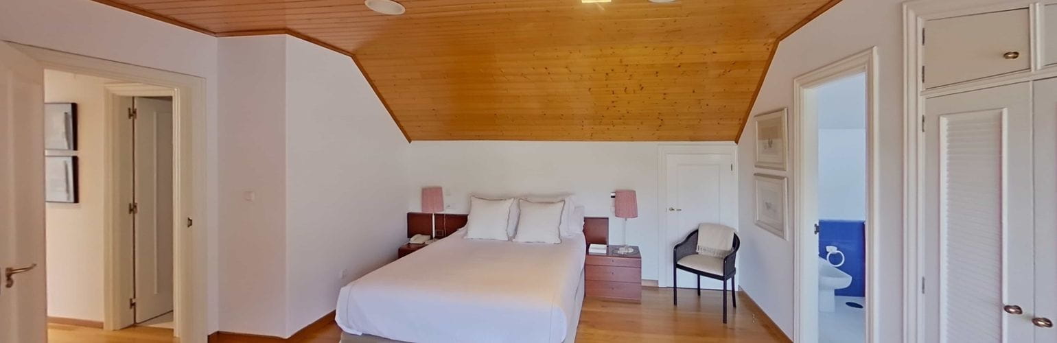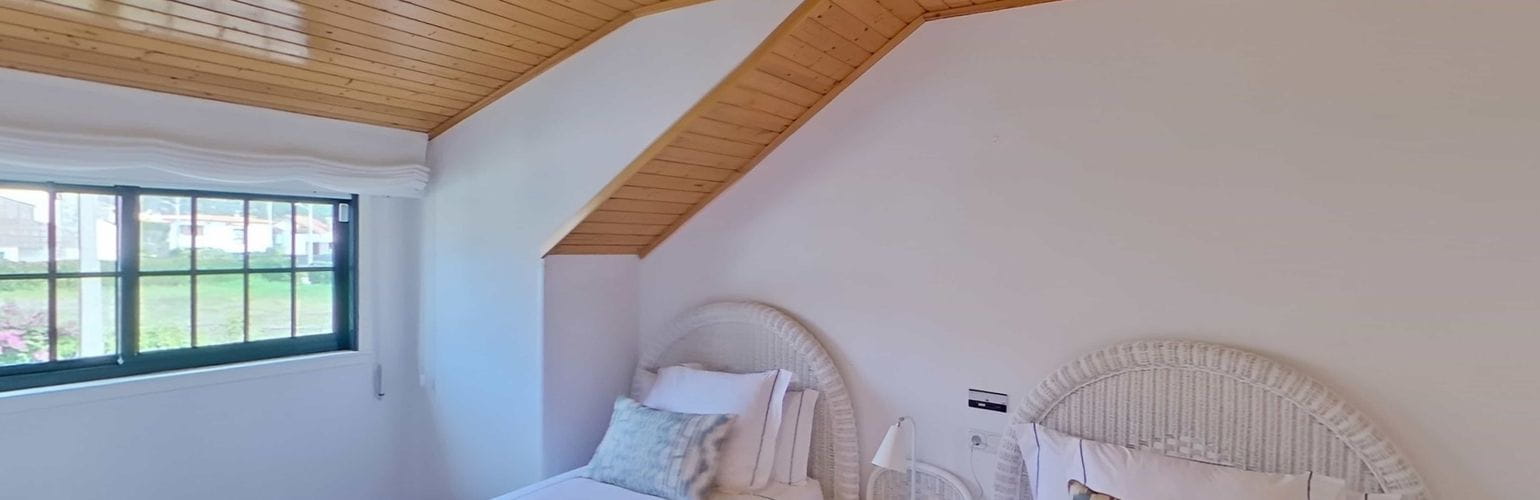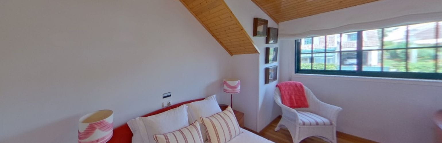 En la planta superior se distribuyen cuatro dormitorios amplios y dos baños completos, uno de ellos en suite dentro del dormitorio principal, que además cuenta con terraza privada con vistas al jardín.
