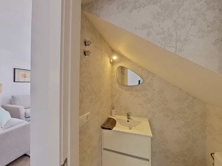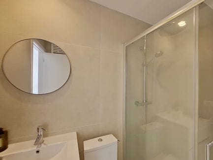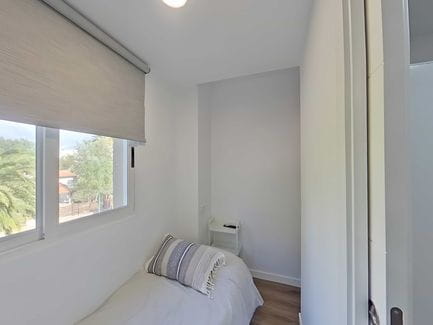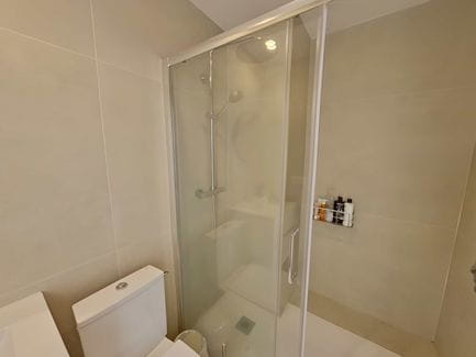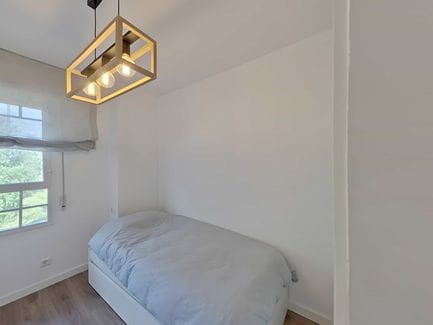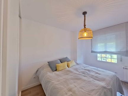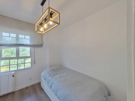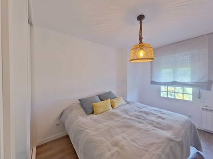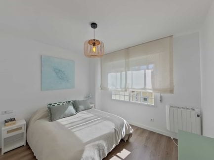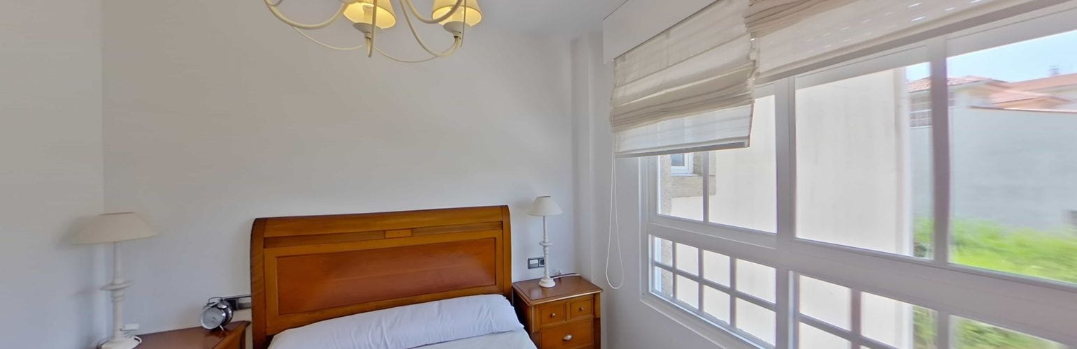 En la zona de descanso se encuentran tres dormitorios con armarios empotrados. El dormitorio principal dispone de baño en suite con bañera y mampara, y un baño completo en el pasillo para compartir.