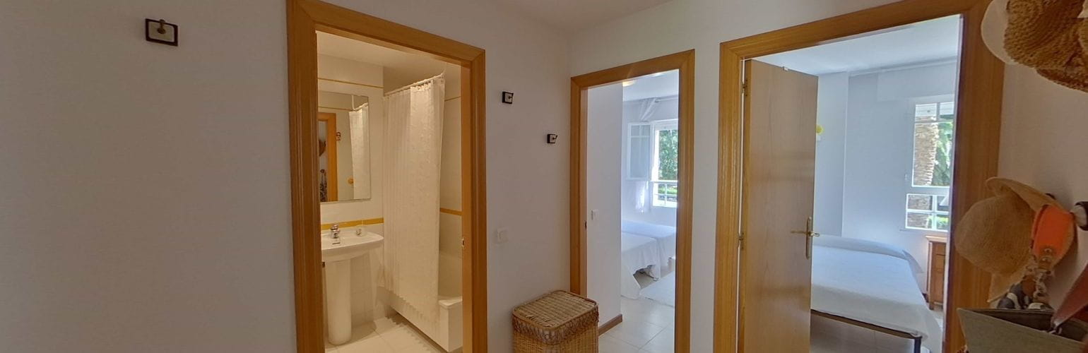 Este piso dispone de tres dormitorios espaciosos, donde se puede optar por dos camas individuales o una cama doble, adaptándose a tus necesidades. Además, cuenta con dos baños completos, con bañera, uno de ellos en suite en el dormitorio principal, asegurando comodidad y privacidad.