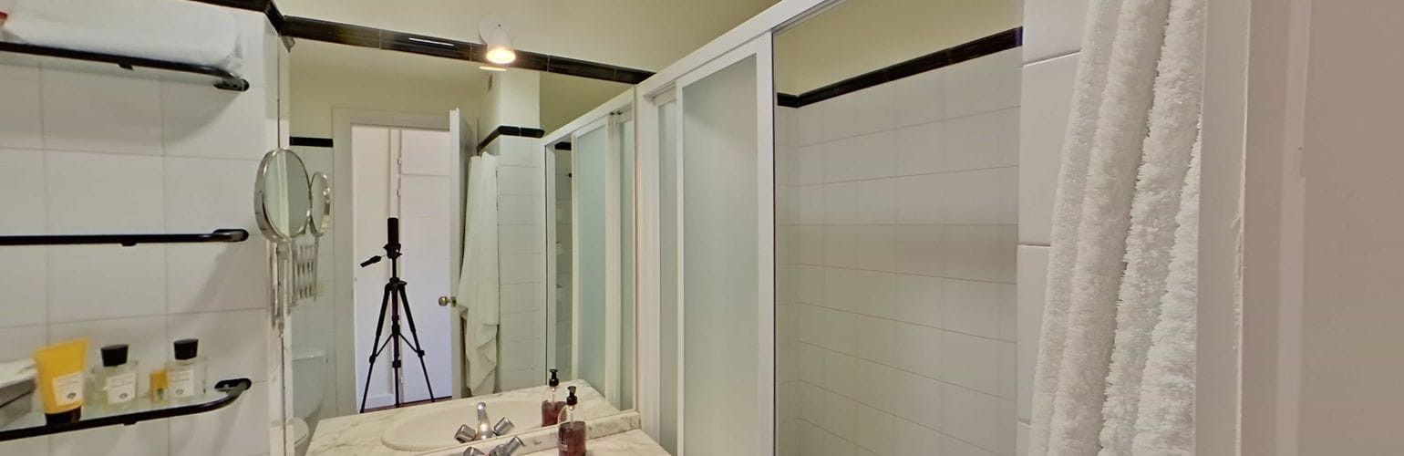 En la zona de descanso encontramos tres dormitorios con armarios empotrados. El principal dispone de baño en suite con bañera y mampara, mientras que el segundo baño, recientemente renovado, ofrece una moderna ducha con mampara.